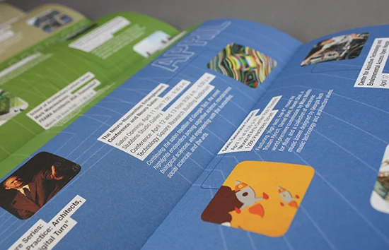 Calendar/self-mailer announcing events and programs associated with the College of Architecture at Georgia Tech. Responsible for concept, design and production. Results based on unique url for this piece: 66.10% new visitors; pages per visit: 2.14; average time on site 01:55.